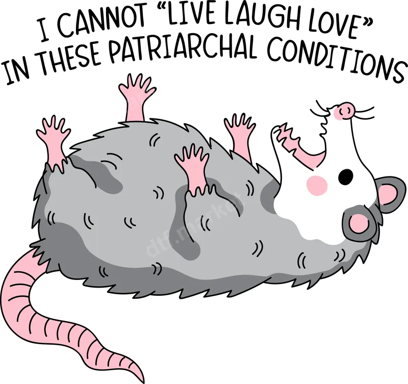 Sarcastic Opossum "Live Laugh Love" Parody DTF Transfer | Anti-Patriarchy Funny