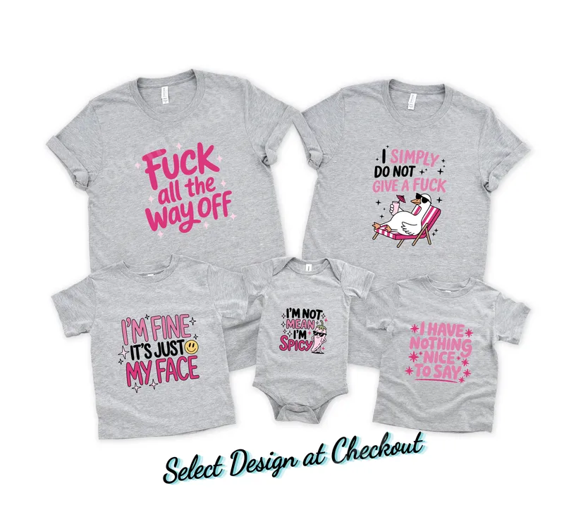 See allShowcase your sassy side with these vibrant direct to film transfer designs. This collection features five distinct, ready to press phrases: "Fuck all the way off," "I Simply Do Not Give A Fuck" (with a chill duck), "I'm Fine It's Just My Face," "I'm Not Mean I'm Spicy" (with a cool chili pepper), and "I Have Nothing Nice To Say." Each design makes a bold, playful statement. Ideal for anyone who loves funny quotes, sarcastic remarks, or has a bold personality, these heat press transfers make fantastic additions to personal wardrobes or unique gifts. Perfect for casual wear, weekend outings, bachelorette parties, girls' nights, or a fun surprise for a friend. They also work great for creators looking for popular t-shirt transfers to add to their inventory. Applying these high-quality apparel transfers is incredibly easy, whether you're using a professional heat press or a household iron. Our DTF transfers adhere beautifully to cotton, polyester, and various blends. Simply set your heat press to 300-325°F for 15 seconds with medium pressure, or follow our easy iron-on instructions. No complex weeding or layering like traditional vinyl transfer methods required! Crafted from premium DTF film, these shirt designs offer exceptional vibrancy, sharp details, and a soft feel that won't crack or peel. Our professional-grade transfers ensure long-lasting durability, making your custom garments look great wash after wash. Enjoy a professional finish with every ready to press transfer, designed for effortless application and superior results.