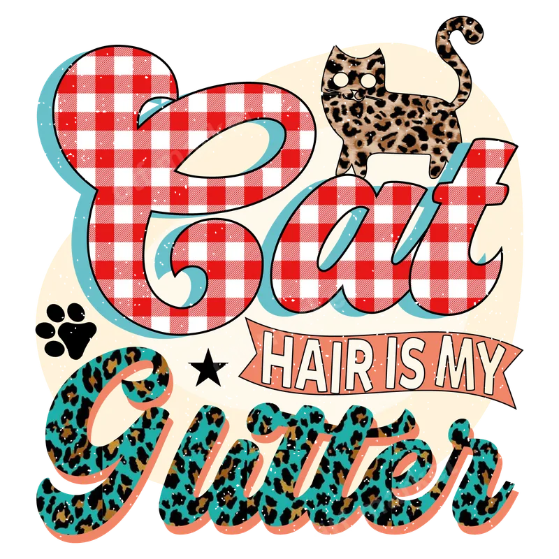 Sassy Cat Hair Is My Glitter DTF Transfer | Retro Leopard Plaid Design