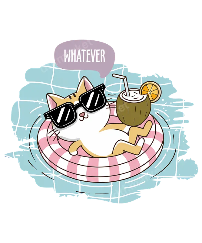 Sassy Cat "Whatever" Pool Float DTF Transfer | Summer Chill Pet Design