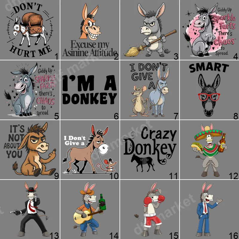 See allInject some mischievous humor into your wardrobe with this vibrant DTF transfer featuring a grinning, sassy donkey ready to cause some fun. The design prominently displays the cheeky phrase, 'Giddy Up Sparkle Farts There's Chaos To Spread,' surrounded by playful stars and hearts, capturing a lighthearted yet rebellious spirit. This high-quality direct to film transfer is perfect for anyone who loves a good laugh and isn't afraid to show their fun, chaotic side, arriving at your doorstep completely ready to press. This humorous apparel transfer is ideal for individuals with a bold sense of humor, donkey enthusiasts, or anyone who enjoys sarcastic and funny quotes. It makes a fantastic gift for friends, family, or colleagues who appreciate witty one-liners and playful designs. Perfect for casual wear, a birthday present, a novelty item for parties, or just to bring a smile to someone's face, this design is sure to be a conversation starter. Applying this heat press transfer is incredibly simple. It's designed to adhere flawlessly to a wide range of fabrics, including cotton, polyester, and various blends, making it versatile for almost any garment. For best results, use a heat press at 300-325°F for 15 seconds with medium pressure, then cold peel the film. For those without a heat press, a household iron can also be used. Best of all, there's absolutely no weeding required, saving you time and effort. Crafted using professional-grade DTF film and inks, this t-shirt transfer ensures stunning, vivid colors and crisp details that truly pop. The design is crack-resistant, highly durable, and features a soft-to-touch finish once applied, ensuring long-lasting wear and comfort. Give your clothing, tote bags, or accessories a unique, humorous touch with this durable and easy-to-apply heat press design.