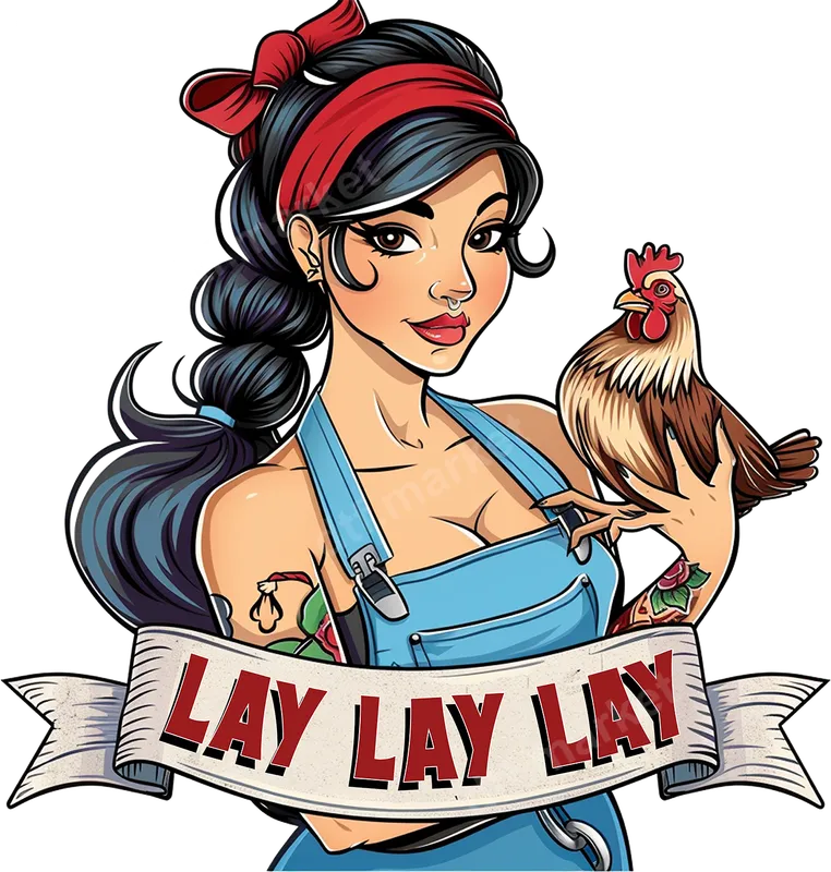 See allThis vibrant DTF transfer showcases a playful pin-up style farm girl with a red bandana and tattoos, proudly holding her chicken. A humorous banner beneath reads 'LAY LAY LAY', making this ready to press design a unique statement piece for anyone who loves farm life with a bit of edge. The artwork features crisp lines and bold colors, ensuring your apparel stands out. This one-of-a-kind heat transfer is perfect for chicken enthusiasts, proud farm owners, or anyone with a sassy sense of humor. It makes an excellent gift for Mother's Day, birthdays, or just to add a fun touch to everyday wear. Ideal for casual outings, farm visits, or even as a conversation starter at country fairs, this design appeals to those who appreciate a blend of retro charm and modern wit. Applying this apparel transfer is simple and requires no weeding. It works beautifully on a wide range of fabrics, including cotton, polyester, and their blends. For best results, use a heat press at 300-325°F for 15 seconds with medium pressure, then cold peel. While a heat press is recommended for professional results, this design can also be applied with a household iron, making it a versatile iron on transfer for crafters of all skill levels. Our DTF transfers are produced using premium film and ink, ensuring exceptional durability and a soft, smooth feel once applied. Enjoy crack-resistant designs with professional-grade adhesion that withstands numerous washes. This high-quality direct to film transfer maintains its vibrant colors and intricate details, transforming any garment into a personalized masterpiece with ease.