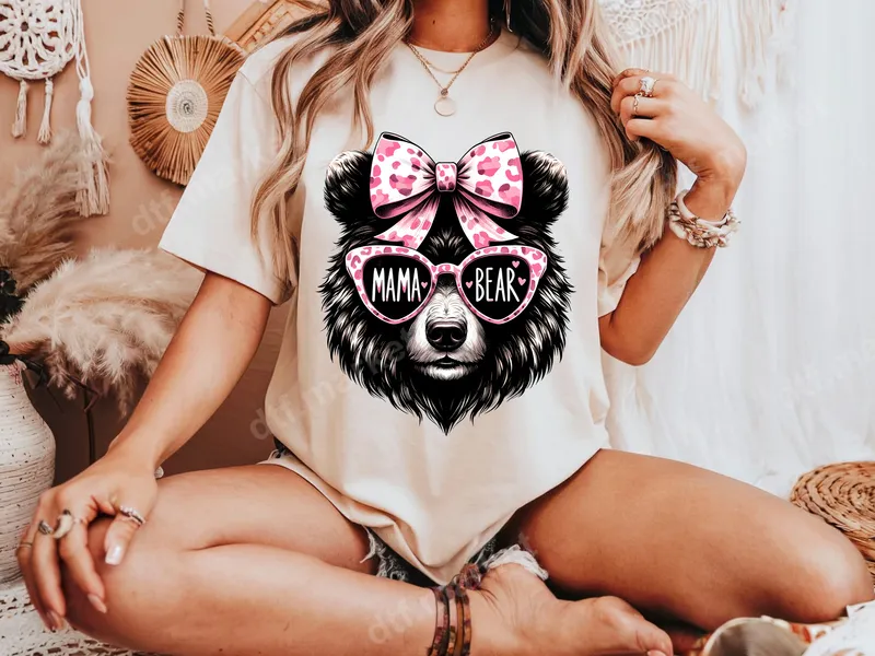 See allUnleash your inner fierce but stylish 'Mama Bear' with this captivating DTF transfer design. Featuring a beautifully detailed bear's head, complete with trendy pink heart-shaped sunglasses inscribed with 'MAMA' and 'BEAR,' and topped with an adorable matching pink leopard print bow, this graphic is the epitome of sassy motherhood. It's a ready to press transfer that brings a vibrant, playful, and loving energy to any garment. This eye-catching design is perfect for proud mothers, grandmothers, and even 'auntie bears' who want to show off their affectionate yet strong personality. It's an ideal choice for Mother's Day gifts, baby showers, gender reveals (for the new mama!), family vacations, or just everyday wear to celebrate the amazing women in your life. Surprise a special mom with a unique heat transfer design that truly speaks to her spirit. Applying this direct to film transfer is incredibly easy, making it accessible for both experienced crafters and beginners. It works seamlessly on a wide variety of fabric types, including 100% cotton, polyester, cotton/poly blends, and even tri-blends. Simply use a heat press at 300-325°F for 15 seconds with medium pressure, then cold peel for a perfect finish. For household irons, ensure even, firm pressure. No tedious weeding or layering required, just a professional finish every time. Our premium DTF transfer boasts brilliant colors that pop, exceptional durability, and a soft, lightweight feel that integrates smoothly with your fabric. These heat press designs are engineered to be crack-resistant, peel-resistant, and withstand countless washes, ensuring your 'Mama Bear' statement lasts. Elevate your apparel with a high-quality, long-lasting iron on transfer from dtf.market.