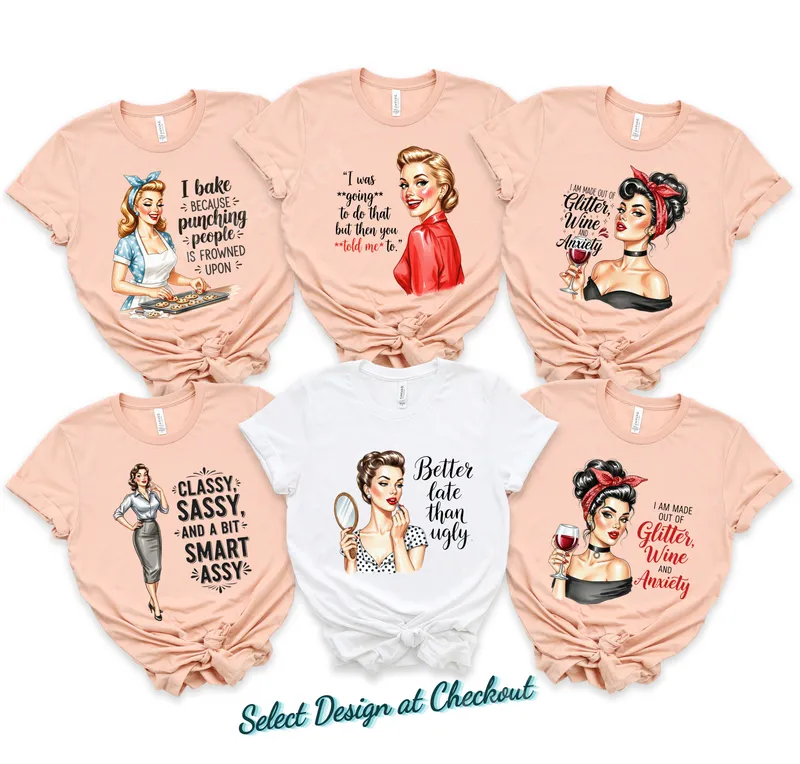 See allUnleash your inner sass with our collection of funny pin-up girl DTF transfers, perfect for adding retro charm and witty humor to any garment. Each design features a beautifully illustrated vintage woman paired with a relatable, rebellious, or hilarious quote. These high-quality, ready to press transfers are ideal for personalizing your wardrobe or creating unique apparel. These versatile heat transfer designs are crafted for women who embrace individuality, enjoy a sarcastic quip, or love timeless pin-up art. They make fantastic iron on gifts for birthdays, Mother's Day, bachelorette parties, or just because. From 'glitter, wine, and anxiety' to 'better late than ugly,' find a shirt design that speaks to your personality and attitude. Applying your new custom transfer is simple and efficient. Our DTF transfers work flawlessly on cotton, polyester, and blends, ensuring vibrant, lasting results. Use a heat press at 300-325°F for 15 seconds with medium pressure. These heat press ready designs also allow for application with a household iron. Forget weeding vinyl; just press and peel for a flawless finish. Experience superior quality with our professional-grade direct to film transfers. Each boasts vibrant, true-to-color imagery that remains crack-resistant and soft to the touch, even after countless washes. Crafted using durable DTF film and strong adhesive, these apparel transfers ensure a long-lasting, professional finish. Elevate your custom creations with designs that look incredible and stand the test of time.