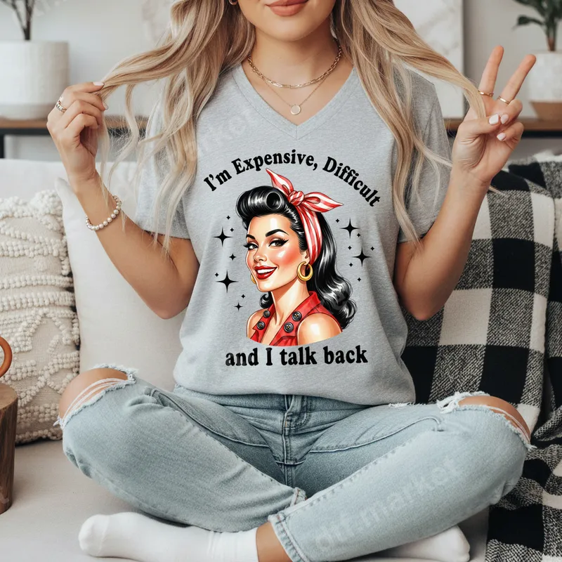 Sassy Pin-Up Girl "Expensive, Difficult, Talk Back" DTF Transfer