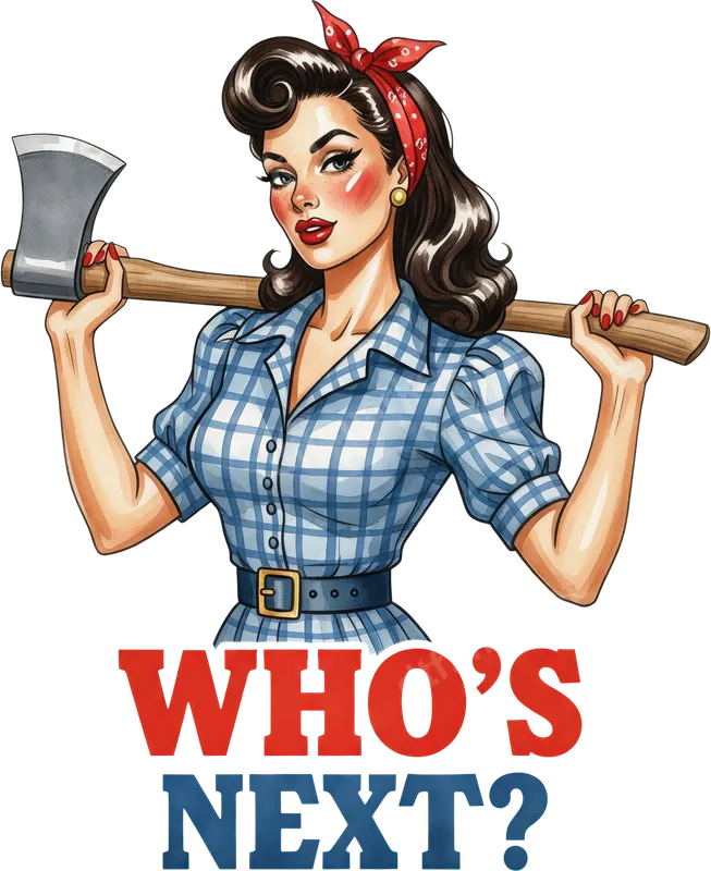 Sassy Pin-Up Woman Axe "Who's Next?" DTF Transfer | Retro Strong Woman