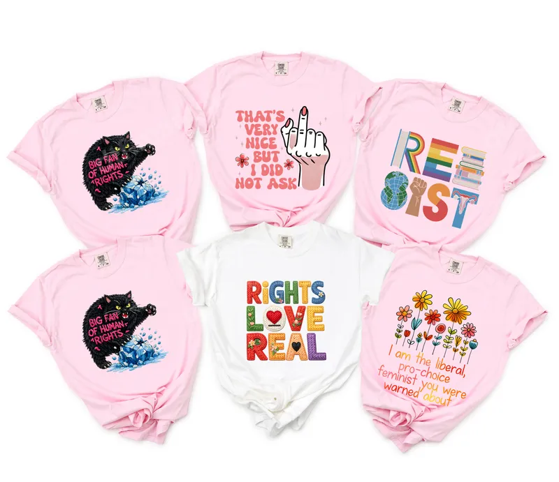 See allThis vibrant direct to film transfer features a powerful statement surrounded by a cheerful floral motif. The design reads, "I am the liberal, pro-choice feminist you were warned about," presented in a flowing script and complemented by a cluster of colorful, hand-drawn flowers. This ready to press DTF transfer combines a bold message with a touch of artistic flair, perfect for those who want to express their convictions with style. Ideal for activists, feminists, and anyone proud to stand for liberal values and reproductive rights, this apparel transfer is perfect for rallies, protests, casual wear, or as a thoughtful gift for like-minded friends and family. It’s a great way to personalize a t-shirt or tote bag for Women's Rights events, political gatherings, or simply for everyday empowerment. Applying this heat press transfer is incredibly easy. Designed for professional results, it works beautifully on cotton, polyester, and various fabric blends. For best results, use a heat press at 300-325°F for 15 seconds with medium pressure. It's also suitable for application with a household iron, making it accessible for everyone. Enjoy a seamless process with no weeding or intricate layering required. Experience superior quality with this durable iron on transfer. Our DTF prints are known for their exceptionally vibrant colors, impressive detail, and crack-resistant finish. The transfers boast a soft hand feel once applied, ensuring comfort and longevity. Each design is printed on professional-grade DTF film with a strong adhesive, guaranteeing a long-lasting, high-quality addition to your garments.