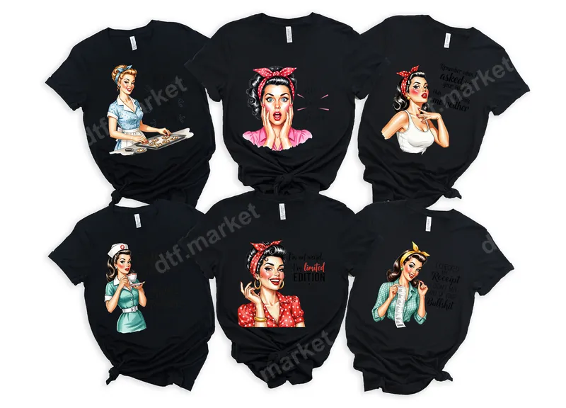 See allElevate your style with our collection of Sassy Retro Pin-Up Girl DTF transfers. These vibrant, ready to press designs feature classic pin-up women paired with humorous and sarcastic sayings. From 'I'm limited edition' to 'I didn't buy any of your Bullshit,' each heat press design adds vintage flair to your apparel. Perfect for bakers, nurses, or anyone with a strong, witty attitude, these designs are made to make a statement. These unique heat press transfers are ideal for those who love retro aesthetics, empowering messages, and a good laugh. They make fantastic gifts for friends, sisters, or colleagues who appreciate sarcastic humor and vintage charm. Perfect for casual wear, themed parties, or girls' nights out, these iron on designs offer a fun way to personalize your wardrobe. Celebrate birthdays or treat yourself to a standout piece. Applying your new apparel transfer is simple. Our direct to film transfers adhere beautifully to cotton, polyester, and blends. For best results, use a heat press at 300-325°F for 15 seconds with medium pressure. Unlike vinyl transfers, no weeding is required, making customization quick and hassle-free. Create your own unique t-shirt transfer with ease, ensuring a professional, long-lasting finish. Experience the superior quality of our DTF transfers. Each design boasts incredibly vibrant colors and sharp details. Engineered for durability, these transfers are crack-resistant, peel-resistant, and machine washable, ensuring your designs look fantastic wash after wash. The soft-touch finish means your customized clothing will be comfortable to wear, feeling like part of the fabric itself. Get professional-grade heat press ready transfers designed to impress.