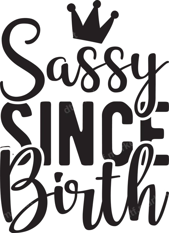 See allThis bold 'Sassy Since Birth' DTF transfer features playful script lettering paired with strong sans-serif text, topped by a charming crown graphic. It's a perfect ready to press design for anyone who's confidently embraced their personality from day one. This high-quality direct to film transfer arrives pre-printed and ready for immediate application, ensuring a professional and vibrant finish on your chosen garment. This sassy heat transfer is ideal for birthdays, girls' trips, or just everyday wear to show off a fun, confident attitude. It makes an excellent gift for friends, sisters, daughters, or anyone who knows they were born to be a queen. Perfect for personalizing clothing for a fun outing or as a unique present for someone celebrating their special day. Applying this iron on transfer is straightforward. Simply use a heat press at 300-325°F for 15 seconds with medium pressure. Alternatively, a household iron can be used for smaller projects, though a heat press provides the best results. Our heat press ready transfers require no weeding, cutting, or layering, saving you time and effort. It works beautifully on cotton, polyester, and various fabric blends. Experience superior durability and vivid colors with this professional-grade apparel transfer. Our DTF transfers are designed to be crack-resistant, peel-resistant, and incredibly soft to the touch, ensuring comfort and longevity. The strong adhesive ensures your design stays put wash after wash, making it a reliable choice for long-lasting custom apparel. Create stunning, high-quality garments with ease.
