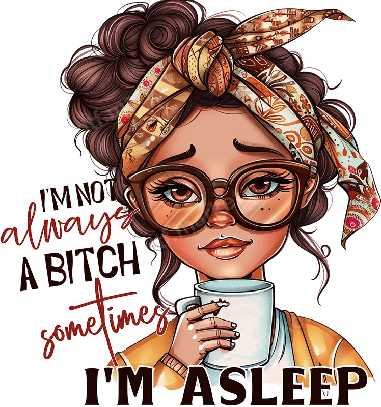 See allUnleash your inner sassy humor with this vibrant 'I'm not always a a bitch, sometimes I'm asleep' DTF transfer. This eye-catching direct to film transfer features a stylish, dark-haired woman in glasses, holding a coffee mug, adorned with a chic headscarf. Her expression perfectly captures that relatable, tired-but-sassy vibe, making it a perfectly ready to press design for any item needing a bold statement. It's an ideal shirt design for those who appreciate wit and a good cup of joe. This unique heat press transfer is perfect for coffee aficionados, busy moms, teachers, or anyone who lives by the mug and embraces their frank personality. It makes an excellent gift for birthdays, Mother's Day, or just a thoughtful present for a friend who appreciates a good laugh and unapologetic honesty. Use this iron on transfer to personalize apparel for casual outings, coffee shop visits, or just lounging around at home. Our premium DTF transfer works seamlessly on a wide range of materials, including cotton, polyester, and various blends. Applying your heat press design is effortless; simply use a heat press at 300-325°F for 15 seconds with medium pressure, or even a household iron for smaller applications. There's no tedious weeding required, making your customization project quick and enjoyable. This heat press ready design offers professional results without the hassle. Experience exceptional quality with our direct to film transfers. Each transfer boasts vibrant, full-color graphics that are crack-resistant and incredibly soft to the touch, ensuring maximum comfort and durability. Our professional DTF film features a strong adhesive that bonds securely to your fabric, promising a long-lasting and high-quality finish wash after wash. Transform your garments with this durable, ready to press transfer that stands out.