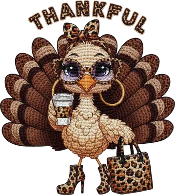 Step into fall with a touch of sassy gratitude using this vibrant 'Thankful' turkey DTF transfer! This delightful design features a fashionable turkey bedecked in chic leopard print accessories, including a stylish headband, trendy cat-eye glasses, large hoop earrings, high-heeled boots, a coffee cup, and a matching handbag. The charming crochet-like texture adds a cozy, handcrafted feel, making it a perfect ready to press design for the autumn season. Above this glam gobbler, the word 'THANKFUL' is emblazoned in a matching leopard print font, setting a festive and grateful tone. This unique heat transfer design is perfect for anyone looking to add a dose of fun and fashion to their Thanksgiving wardrobe or fall apparel. It's ideal for women who love trendy, cute, and holiday-themed graphics, small boutique owners creating seasonal collections, or crafters preparing for fall festivals. Use this iron on transfer to make festive shirts for family gatherings, Friendsgiving celebrations, or as a thoughtful gift for a fashion-forward friend. Embrace the spirit of gratitude with a playful twist, whether for personal wear or business inventory. Applying this heat press transfer is simple and efficient. It adheres beautifully to a wide range of materials, including cotton, polyester, cotton-poly blends, and even nylon, ensuring versatility for your projects. Achieve professional results with a heat press (300-325°F for 15 seconds, medium pressure) or a household iron. Say goodbye to tedious weeding – simply peel and press! This design is fantastic for custom t-shirts, cozy hoodies, sweatshirts, tote bags, pillow covers, and even unique denim jackets. For best results, wash garments inside out and tumble dry low to maintain durability. Experience superior quality with this ready to press transfer, showcasing vibrant, full-color printing and exceptional fine detail that truly brings the sassy turkey to life. Our DTF technology ensures the design is crack-resistant and soft to the touch, avoiding the heavy, stiff feel of traditional vinyl. Each direct to film transfer is meticulously printed on premium DTF film with a strong adhesive backing, guaranteeing professional-grade results and long-lasting wear for all your apparel and accessory creations.