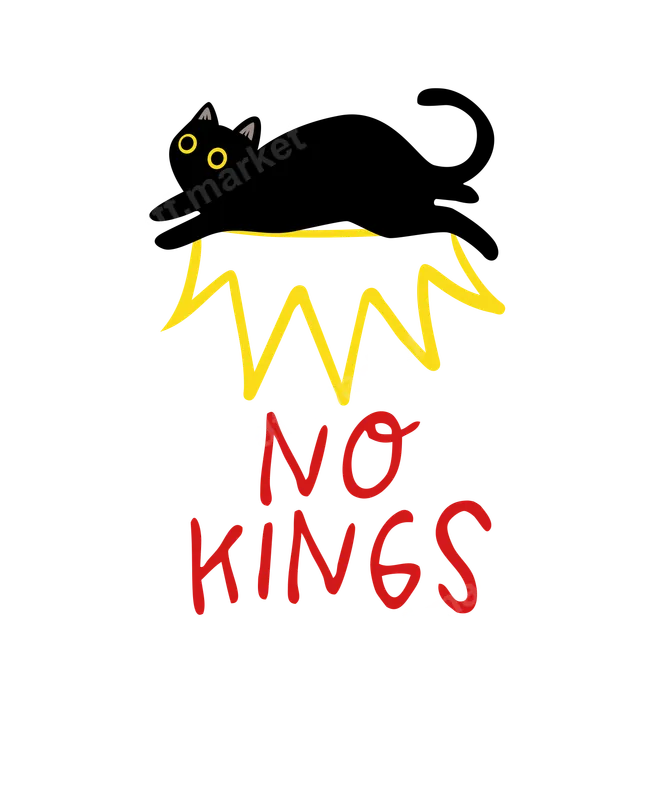 See allThis striking DTF transfer features a sleek black cat leaping over a jagged yellow crown, boldly declaring 'NO KINGS' in vibrant red, hand-drawn typography. This ready to press design encapsulates a rebellious, anti-authoritarian spirit, making it a powerful statement piece for those who dare to challenge the status quo. Ideal for independent thinkers, cat enthusiasts, punk rock fans, and anyone with a fierce, defiant attitude. This unique heat transfer makes an excellent gift for friends who value freedom and individuality, or for personalizing apparel for concerts, protests, or everyday wear. Express your inner rebel and stand out with this unmistakable iron on transfer. Applying this apparel transfer is a breeze! It works seamlessly on a wide range of materials including cotton, polyester, and various fabric blends. For best results, use a heat press at 300-325°F for 15 seconds with medium pressure. It's also suitable for application with a household iron. No tedious weeding required, so you can achieve professional results quickly. Our high-quality t-shirt transfer is engineered for exceptional vibrancy and durability. The colors are brilliant, and the design is crack-resistant, ensuring it looks great wash after wash. You'll love the soft feel of the finished product, making your custom garments comfortable to wear. Each heat press design is printed on professional-grade DTF film with strong adhesive for a long-lasting, impressive finish.