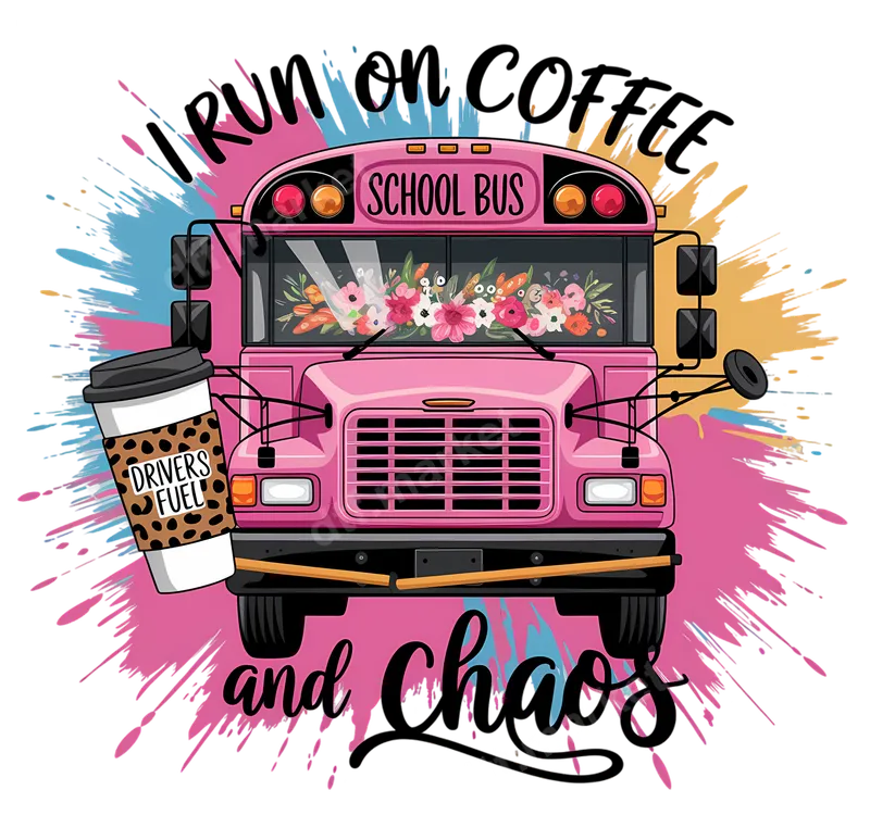 See allThis lively DTF transfer captures the energetic spirit of school bus drivers with a playful design centered around "I Run on Coffee and Chaos." It features a vibrant pink school bus, adorned with a charming bouquet of flowers in its windshield, and a leopard-print coffee cup labeled "DRIVERS FUEL." The dynamic paint splatter background adds to the chaotic yet fun aesthetic, making this a truly unique and ready to press design. This unique heat transfer is perfect for school bus drivers, dedicated transportation staff, or anyone who appreciates the daily hustle of getting kids to school. It makes an excellent gift for Bus Driver Appreciation Week, back-to-school season, Christmas, or birthdays. Ideal for showing pride in your demanding yet rewarding occupation, this design can also appeal to parents or teachers who understand the "coffee and chaos" lifestyle. Applying this heat press ready transfer is straightforward and efficient. It adheres beautifully to a wide range of materials, including cotton, polyester, and various fabric blends. For best results, use a heat press at 300-325°F for 15 seconds with medium, even pressure. This durable iron on transfer eliminates the need for weeding, making your customization process quick and hassle-free. A household iron can also be used, though a heat press is recommended for professional longevity. Crafted using premium DTF film and high-quality inks, this apparel transfer promises vibrant colors that truly pop and resist cracking or fading after washing. The result is a soft-to-touch finish that feels seamlessly integrated into the fabric, not stiff or heavy. Enjoy a professional-grade custom transfer that stands up to daily wear and tear, ensuring your message stays bright and clear.