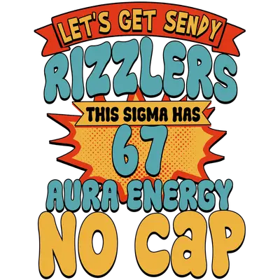 See allUnleash peak Gen Z humor with this bold "Let's Get Sendy Rizzlers This Sigma Has 67 Aura Energy No Cap" DTF transfer. Featuring a vibrant retro typography style with bubbly letters and dynamic banner elements, this design perfectly captures the essence of trending internet slang. It's a statement piece that's ready to press, bringing a unique blend of vintage aesthetics and modern wit to any garment. The bright red, teal, and orange color palette pops against any fabric. This iron on transfer is perfect for Gen Z trendsetters, meme enthusiasts, and anyone who appreciates a good dose of ironic humor. Ideal for small t-shirt businesses looking to stock up on popular culture designs, or crafters creating custom apparel for friends and family. It makes an excellent, witty gift for birthdays, casual gatherings, or just to add some personality to everyday wear. Stand out from the crowd with this unique heat transfer design. Applying this high-quality heat press transfer is simple and straightforward. It adheres perfectly to a wide range of materials including cotton, polyester, cotton-poly blends, and even nylon. Just use a heat press at 300-325°F for 15 seconds with medium pressure, or apply with a household iron. There's no tedious weeding required—simply peel and press! Create custom t-shirts, hoodies, sweatshirts, tote bags, pillow covers, baby onesies, aprons, and denim jackets. For lasting durability, wash garments inside out and tumble dry low. Experience professional results with this premium ready to press transfer. It boasts vibrant, full-color printing with exceptional fine detail, ensuring your design looks crisp and dynamic. The transfer is crack-resistant and soft to the touch, avoiding the heavy, stiff feel of traditional vinyl. Each direct to film transfer is produced on high-grade DTF film, featuring a strong adhesive backing for reliable, long-lasting application that will impress every time.