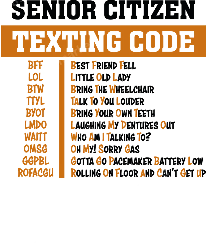 Senior Citizen Texting Code Funny DTF Transfer Design