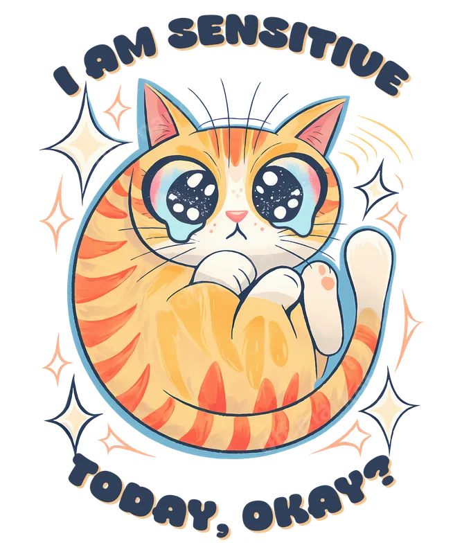 See allShow off your relatable, sensitive side with this charming "I Am Sensitive Today, Okay?" DTF transfer featuring an adorable, big-eyed crying ginger cat. This vibrant design captures a perfect blend of cute kawaii aesthetics and a touch of humorous self-awareness, making it an instant conversation starter. Our ready to press transfers ensure you can quickly and easily add this unique graphic to your favorite apparel and accessories. This whimsical heat transfer is ideal for cat lovers, teenagers, young adults, or anyone who appreciates a good dose of ironic humor and cute pet designs. It makes a fantastic gift for friends who understand the struggle of sensitive days, or simply a fun addition to your own wardrobe for casual outings, school, or just lounging at home. Create custom t-shirt transfers for birthday gifts or personalized apparel that truly stands out. Applying this high-quality iron on transfer is a breeze! It works beautifully on a wide variety of fabrics, including cotton, polyester, and blends. For best results, use a heat press at 300-325°F for 15 seconds with medium pressure, then cold peel the film. For those without a heat press, a household iron can also achieve great results with careful application. Best of all, there's absolutely no weeding required, saving you time and effort. Each apparel transfer is produced using professional-grade DTF film, resulting in incredibly vibrant colors, crisp details, and a soft-to-the-touch feel that's crack-resistant and durable through many washes. Our strong adhesive ensures your design stays put, giving your custom garments a long-lasting, professional finish. Add this unique heat press design to your collection and wear your emotions on your sleeve!