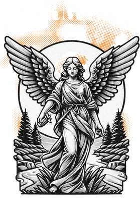 Discover tranquility with this striking Angel in Nature DTF transfer, a beautifully detailed design that blends spiritual grace with natural serenity. This grayscale artwork showcases a majestic angel holding a sprig, framed by towering pine trees and a subtle, distressed orange halftone backdrop, creating a unique vintage-modern aesthetic. With the word "HARMONY" elegantly placed above and "IN THE SERENE NATURE WE PRAISE" below, this ready to press DTF transfer encapsulates a feeling of peace and contemplation. This captivating design is perfect for spiritual individuals, nature lovers, or anyone seeking a meaningful and artistic statement piece. It makes a thoughtful gift for friends and family who appreciate inspirational themes, or for small boutique owners and crafters looking to add unique inventory. Apply this heat transfer design to create custom apparel for spiritual retreats, meditation groups, or simply for everyday wear that promotes a sense of calm and balance. Applying this heat press transfer is effortless, suitable for a wide range of materials including cotton, polyester, cotton-poly blends, and even nylon. Achieve professional results using a heat press (300-325°F for 15 seconds with medium pressure) or a household iron. No weeding is required – simply peel and press! It's ideal for custom t-shirts, hoodies, sweatshirts, tote bags, pillow covers, baby onesies, aprons, and denim jackets. For lasting durability, wash garments inside out and tumble dry on low heat. Our ready to press transfer ensures vibrant, full-color printing with exceptional fine detail and a soft-hand feel, completely free from the heavy texture of traditional vinyl. Each direct to film transfer is produced on premium DTF film, engineered with a strong adhesive backing to guarantee professional-quality results on every application. Elevate your apparel with this unique blend of artistic beauty and spiritual harmony.