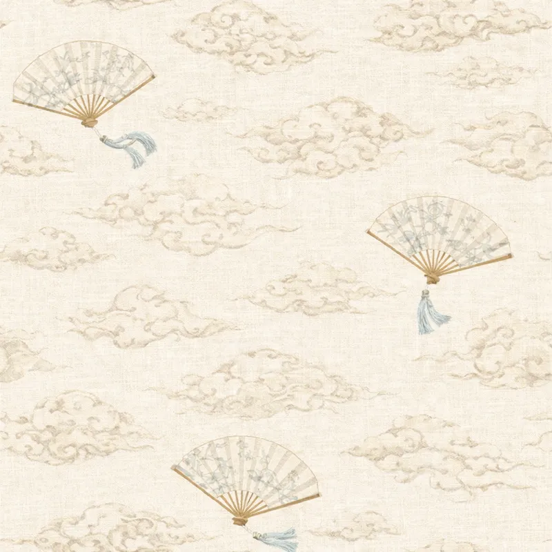 Serene Asian Fan & Cloud Pattern DTF Transfer