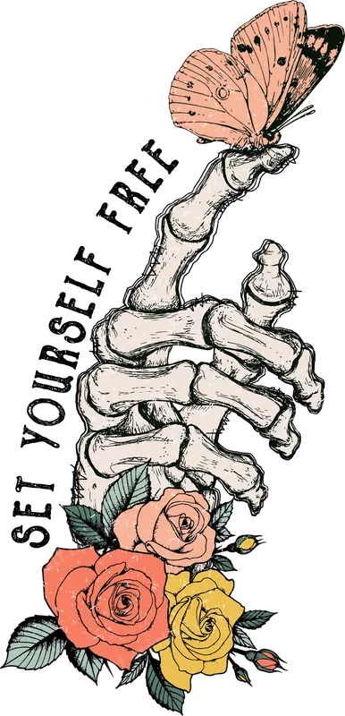 Set Yourself Free Skeleton Hand Butterfly & Roses DTF Transfer Design