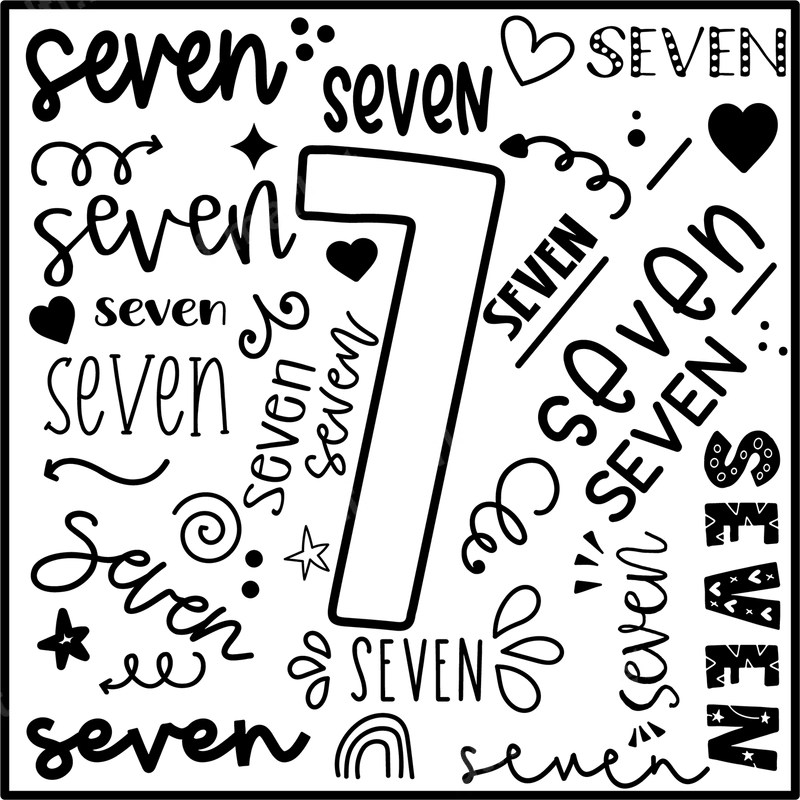 Seven Number 7th Birthday Doodle DTF Transfer - Ready to Press