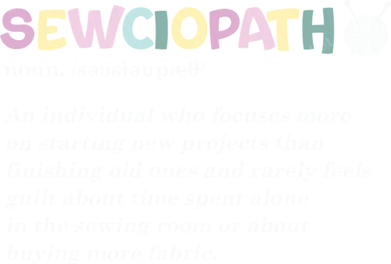 See allThis hilarious DTF transfer features the word "SEWCIOPATH" in a vibrant, playful pastel font, complete with a charming yarn ball and knitting needles graphic. Below, a witty definition describes "An individual who focuses more on starting new projects than finishing old ones and rarely feels guilt about time spent alone in the sewing room or about buying more fabric." This ready to press design perfectly captures the relatable humor of every dedicated crafter. This unique heat transfer is ideal for anyone passionate about sewing, knitting, crocheting, or any craft that involves an ever-growing stash and countless unfinished projects. It makes a fantastic gift for crafty friends, family members, or for yourself to wear to craft fairs, workshops, or simply while indulging in your favorite hobby. Perfect for birthdays, holidays, or just because you embrace the sewciopath lifestyle! Applying this ready to press transfer is simple and efficient. Our high-quality DTF transfers work beautifully on a wide range of materials, including cotton, polyester, and various blends. Achieve professional results with a heat press set to 300-325°F for 15 seconds with medium pressure, or apply with a household iron (follow specific instructions). Forget weeding vinyl; this iron on decal is hassle-free. You'll love the exceptional quality of our direct to film transfers. Each t-shirt transfer boasts vibrant colors that pop, superior crack-resistant durability, and a soft, lightweight feel that integrates seamlessly with your garment. Crafted with professional-grade DTF film and strong adhesive, these apparel transfers ensure a long-lasting, professional finish on any item.