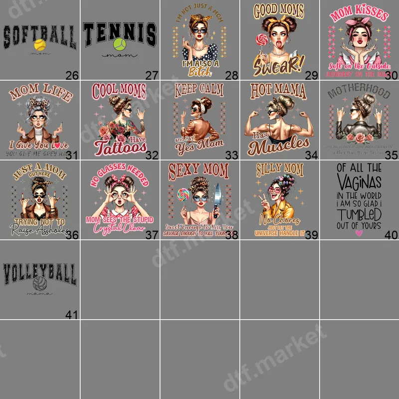 See allThis vibrant DTF transfer features a stylish mom with sunglasses, a leopard print bandana, confidently holding a lollipop and a knife. The bold text reads "SEXY MOM" and "Sweet Enough To Kiss You. Savage Enough To Kill You." This edgy and humorous design is a high-quality, ready to press statement piece, perfect for any mom who embodies both sweetness and ferocity with a fierce attitude. This direct to film transfer is an excellent choice for the confident, sarcastic, and strong mom who isn't afraid to showcase her unique personality. It makes a fantastic gift for Mother's Day, birthdays, Christmas, or simply to celebrate a mom who appreciates a good laugh and a touch of edgy humor. Ideal for adding a personalized, one-of-a-kind flair to your own wardrobe or for creating memorable custom gifts for friends and family. Applying this apparel transfer is incredibly simple and efficient. For the best results, use a heat press at 300-325°F for 15 seconds with medium pressure. While a heat press is recommended, a household iron can also be used by carefully following the provided instructions. This heat press design requires no tedious weeding or complicated layering, making garment customization quick and hassle-free for any fabric type. Our iron on transfers are produced using premium DTF film, ensuring brilliantly vibrant colors that pop and a luxuriously soft-to-the-touch feel that integrates beautifully with any garment fabric. These designs are highly durable, crack-resistant, and engineered to withstand repeated washes, maintaining their integrity and bold statement over time. Experience professional-grade quality with every ready to press transfer you order.