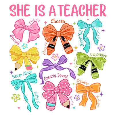 She Is A Teacher Inspirational Christian Bows DTF Transfer
