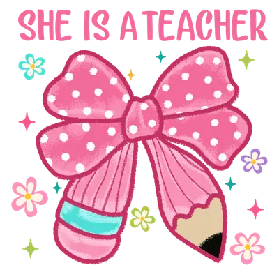 She Is A Teacher Pink Bow Pencil DTF Transfer