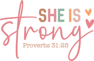 She Is Strong Proverbs 31:25 DTF Transfer - Inspirational Bible Verse
