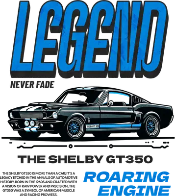Shelby GT350 Legend DTF Transfer - Classic Muscle Car Roaring Engine