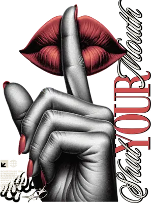 Shhh Lips Hand DTF Transfer - Shut Your Mouth Streetwear Design