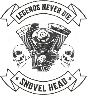 Shovel Head Motorcycle Engine Skulls DTF Transfer | Legends Never Die Biker