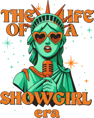 See allThis vibrant design features the iconic Statue of Liberty reimagined as a glamorous showgirl, complete with heart-shaped sunglasses and a vintage microphone, all set against a backdrop of sparkling stars. Bold orange text proudly proclaims "THE LIFE OF A SHOWGIRL era," giving this piece a playful, retro pop star vibe. This premium DTF transfer is an eye-catching way to express your unique style, delivered as a high-quality, ready to press design. Perfect for theater enthusiasts, performers, karaoke queens, pop culture aficionados, or anyone who loves a touch of playful patriotism. This design makes a fantastic gift for birthdays, bachelorette parties, or as unique apparel for concertgoers and divas in the making. Small t-shirt businesses and Etsy sellers looking for unique heat transfer designs will find this an excellent addition to their inventory, offering a unique iron on transfer that stands out. Applying this heat press transfer is a breeze on a wide range of fabrics including cotton, polyester, cotton-poly blends, and even nylon. Achieve professional results with a heat press set at 300-325°F for 15 seconds with medium pressure, or easily apply with a household iron. Forget weeding; simply peel and press! It's perfect for custom t-shirts, hoodies, sweatshirts, tote bags, pillow covers, and denim jackets, allowing you to create personalized apparel effortlessly. For best care, wash inside out and tumble dry low to ensure lasting durability. Our ready to press transfer ensures vibrant, full-color printing with exceptional detail, capturing every nuance of this fun design. Enjoy a soft, crack-resistant finish that feels lightweight, unlike heavy vinyl. Each direct to film transfer is printed on premium DTF film with a strong adhesive backing, guaranteeing a professional application and stunning, long-lasting results every time.