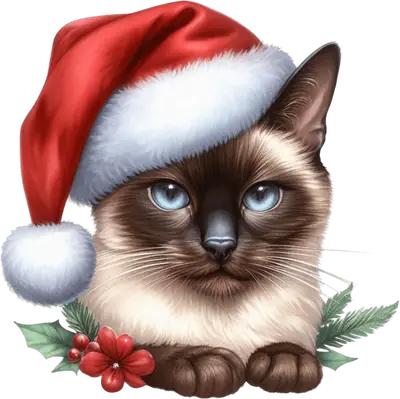 Siamese Cat Santa Hat DTF Transfer | Christmas Pet Iron On
