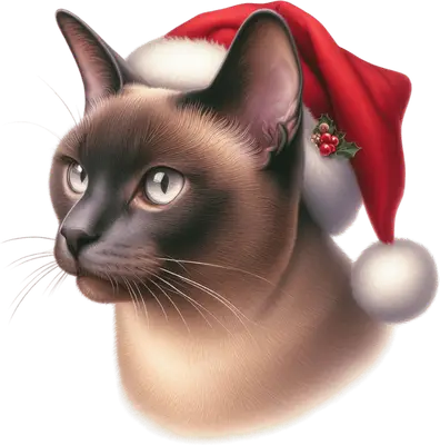 Siamese Cat Santa Hat DTF Transfer - Christmas Pet Lover Design