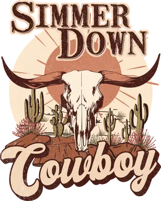 Simmer Down Cowboy Longhorn Skull Western DTF Transfer