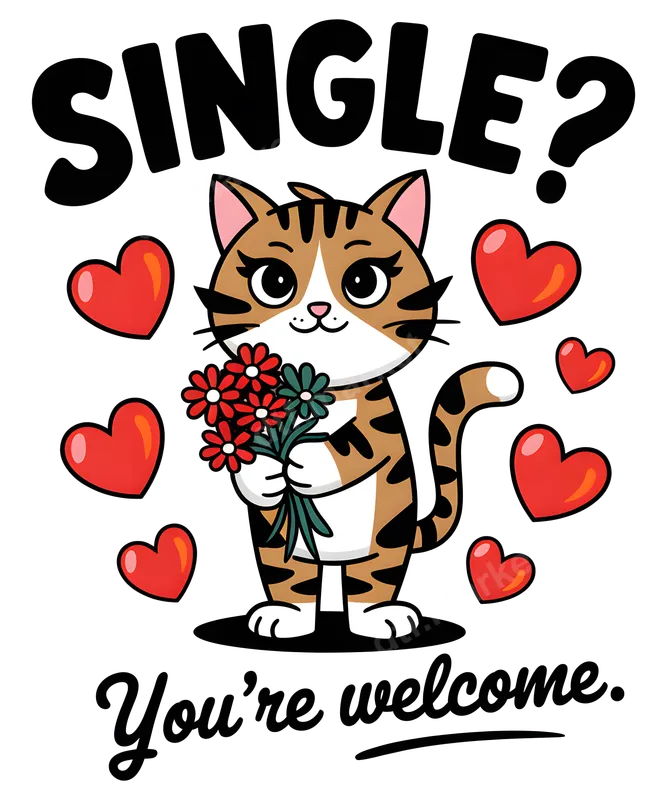 Single? You're Welcome Cute Cat DTF Transfer | Sassy Valentine Humor