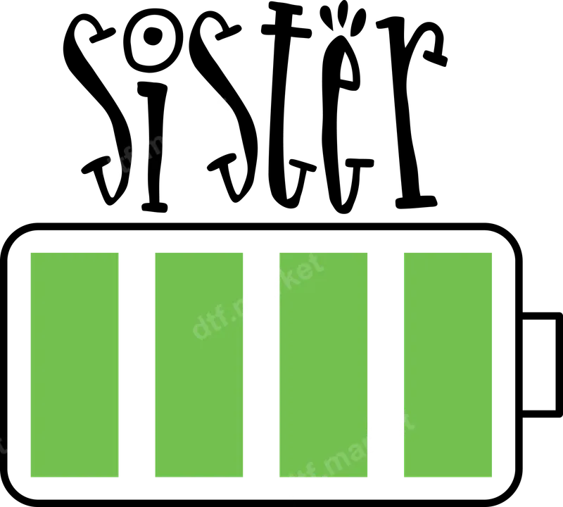 Sister Fully Charged Battery DTF Transfer | Sibling Love Design