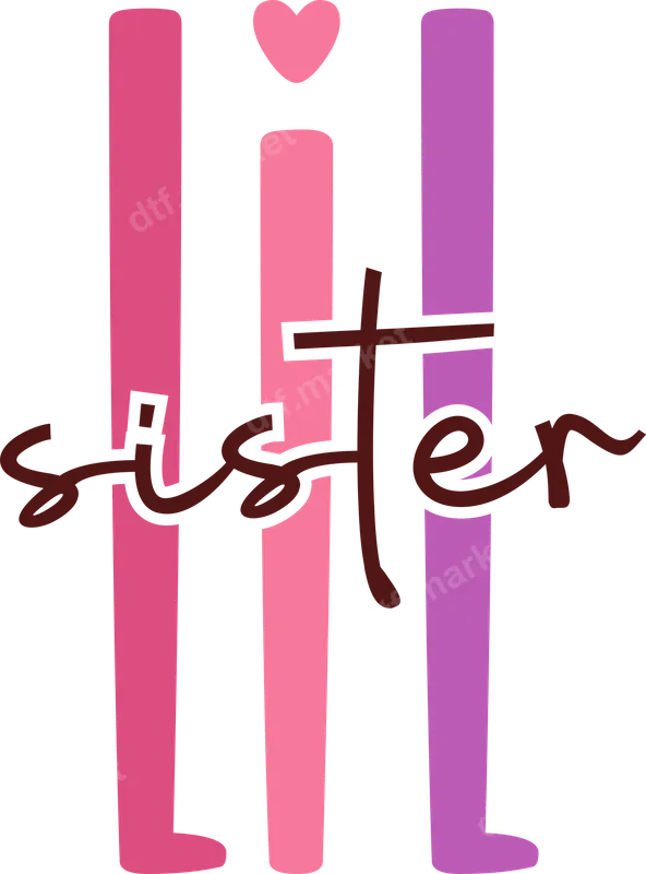 See allThis delightful "Sister" DTF transfer features the word "Sister" in a sweet, flowing script font, adorned with a delicate pink heart dotting the 'i'. The design is backed by vibrant vertical stripes in shades of hot pink, light pink, and purple, creating a cheerful and loving aesthetic. This high-quality direct to film transfer arrives ready to press, making it effortless to create personalized apparel and accessories. Perfect for celebrating the special bond of sisterhood, this versatile heat transfer is ideal for gifts, family gatherings, or just showing off your sibling pride. It's a wonderful choice for birthdays, holidays, or a thoughtful "just because" present for your sister, best friend, or entire sorority group. Create matching t-shirts for a sisters' trip or personalize a tote bag. Applying this vibrant heat press design is incredibly simple. Our ready to press transfer works beautifully on a wide variety of fabrics, including cotton, polyester, and cotton/poly blends. Just use a heat press at 300-325°F for 15 seconds with medium pressure, then perform a warm or cool peel. For household iron users, ensure even, firm pressure. No complicated weeding or layering is required, making DIY projects a breeze. Experience professional-grade results with our durable DTF transfers. Each iron on transfer is crafted to deliver vibrant, long-lasting colors that resist cracking and peeling, even after multiple washes. The soft hand feel of this apparel transfer ensures maximum comfort on any garment. Our premium DTF film provides strong adhesion for a professional finish every time.