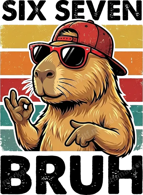 See allUnleash some serious chill vibes with this "SIX SEVEN BRUH" capybara DTF transfer. This unique design features a cool capybara sporting stylish red sunglasses and a backward baseball cap, making an "OK" gesture while pointing down. The distressed retro background with horizontal stripes in yellow, orange, red, and teal adds to its vintage appeal. This high-quality DTF transfer is ready to press, allowing you to create custom apparel instantly. Perfect for meme enthusiasts, capybara fans, and anyone who appreciates a good laugh, this design is sure to turn heads. It's an excellent choice for casual wear, quirky gifts, or to add a touch of internet humor to your wardrobe. Ideal for birthdays, friendly gatherings, or simply expressing your laid-back attitude, this iron on transfer brings a fun, trending vibe to any item. Our versatile heat press transfer works seamlessly on a wide range of fabrics, including cotton, polyester, and various blends. For best results, apply with a heat press at 300-325°F for 15 seconds with medium, even pressure. This ready to press transfer can also be applied with a household iron, making customization accessible for everyone. Enjoy hassle-free application with no weeding required, just press and peel! Experience superior quality with this vibrant t-shirt transfer. Printed with premium inks on professional DTF film, it offers exceptional color brilliance and a soft-to-touch feel. Designed to be crack-resistant and highly durable, your custom garments will withstand numerous washes while maintaining their original look and strong adhesive. Elevate your apparel with a design that's built to last.