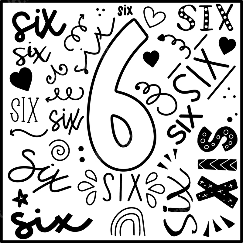 Sixth Birthday Number 6 Doodle DTF Transfer | Ready to Press