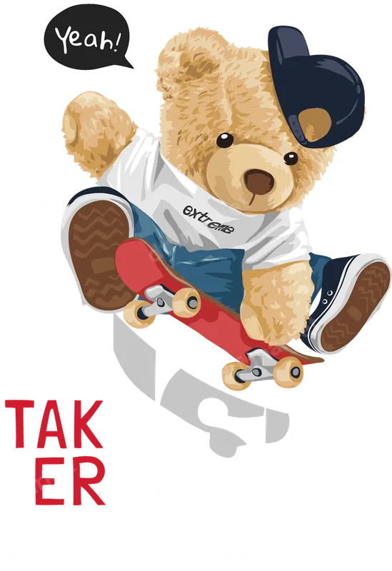 See allThis dynamic DTF transfer features a cool, animated teddy bear mastering a skateboard trick. Dressed in street-style attire including a backwards cap, "extreme" t-shirt, and sneakers, this bear exudes confidence and a can-do attitude. The design is boldly accented with "RISK TAKER" and the motivational phrase "NO RISK, NO REWARD," making it a perfect ready to press statement piece for any garment. This vibrant heat press design is ideal for skate enthusiasts, streetwear lovers, and anyone who lives by a daring motto. It's a fantastic choice for personalizing apparel for teens and young adults, or as a unique gift for birthdays, back-to-school, or just because. Perfect for adding a touch of edgy fun to wardrobes, this iron on transfer appeals to those who embrace an adventurous spirit. Our premium direct to film transfer is designed for easy application on a wide range of fabrics including cotton, polyester, and various blends. Achieve professional results using a heat press at 300-325°F for 15 seconds with medium pressure, or apply it effortlessly with a household iron. Enjoy a hassle-free experience with no weeding required, making customization quick and simple. Experience exceptional quality with our durable t-shirt transfer. Each design boasts vibrant colors, excellent wash durability, and resistance to cracking or peeling. The special DTF film provides a soft hand feel and strong adhesive properties, ensuring your custom transfer looks fantastic and lasts for years to come on any shirt or accessory you choose.