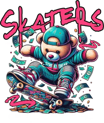 Skater Bear DTF Transfer: Streetwear Graffiti Design with Money & Skateboard