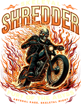 Ignite your wardrobe with the electrifying 'Skeletal Shredder' DTF transfer, a dynamic design that captures the raw power of a flaming skeleton biker tearing through the abyss. This vivid graphic features an undead rider, complete with a studded biker jacket and fiery skull, blazing forward on a custom chopper, surrounded by intense orange and yellow flames. The prominent text "SKELETAL SHREDDER" along with "FURY OF THE ABYSS" and "ABYSSAL RAGE, SKELETAL MIGHT" reinforces its rebellious spirit. This truly eye-catching and ready to press design embodies an unstoppable attitude. This fearless heat transfer design is perfect for motorcycle enthusiasts, rock music fans, heavy metal concert-goers, and anyone who loves bold, edgy apparel. It makes an excellent gift for birthdays, Father's Day, or for customizing gear for a biker rally, tattoo convention, or Halloween event. Small t-shirt businesses and crafters looking to create unique, high-impact garments will find this iron on transfer an essential addition to their inventory, offering a fast way to produce sought-after designs for their customers. Applying this striking heat press transfer is a breeze; it works flawlessly on a wide range of materials including cotton, polyester, cotton-poly blends, and even nylon. Achieve professional results with a heat press set to 300-325°F for just 15 seconds with medium pressure, or easily apply with a household iron. Forget weeding—simply peel and press! It's ideal for custom t-shirts, hoodies, sweatshirts, denim jackets, tote bags, and even hats or motorcycle vests, providing instant style transformation. For lasting durability, we recommend washing garments inside out and tumbling dry on low heat. Experience superior quality with this ready to press transfer, boasting vibrant, full-color printing with exceptional detail that brings the flaming biker to life. The design is crack-resistant and offers a soft, lightweight feel, unlike heavy vinyl transfers. Each direct to film transfer is meticulously printed on premium DTF film, ensuring a strong adhesive bond and professional-grade durability that will stand the test of time and many washes.