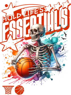 Skeleton Basketball DTF Transfer | Hold Life's Essentials Grunge Design