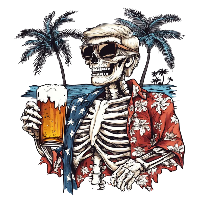 Skeleton Beach Beer Trump Hair DTF Transfer - Patriotic Funny Iron On