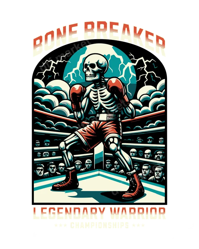 See allUnleash your inner champion with this striking "Bone Breaker" Skeleton Boxer DTF transfer. This intense design features a skeletal warrior in the heart of a boxing ring, donning red gloves and shorts, ready for a fight. Above, the bold text "BONE BREAKER" arcs, while below, "LEGENDARY WARRIOR" and "CHAMPIONSHIPS" declare victory. The dramatic stormy sky background adds to the powerful, edgy vibe, making this premium DTF transfer a true statement piece, ready to press onto your favorite apparel. This fierce apparel transfer is perfect for combat sports enthusiasts, gym-goers, and anyone who appreciates a strong, unique aesthetic. It makes an excellent gift for boxers, MMA fans, or those who love skull art and warrior themes. Ideal for making a statement at the gym, casual outings, or showing off your competitive spirit, this design will stand out in any crowd. Applying this transfer is effortless! It works beautifully on a wide range of fabrics including 100% cotton, polyester, and various blends. For best results, use a heat press at 300-325°F for 15 seconds with medium pressure, followed by a cold peel. You can also achieve great results with a household iron, ensuring consistent, even pressure. Forget about weeding or complicated steps – this iron on transfer is truly ready to apply. Experience exceptional quality with our professional-grade DTF transfers. This heat press design boasts vibrant, true-to-life colors that pop, superior crack resistance for long-lasting wear, and a soft-to-touch finish. Made with durable DTF film and strong adhesive, this transfer ensures a professional look that will withstand countless washes, keeping your "Legendary Warrior" design looking sharp.