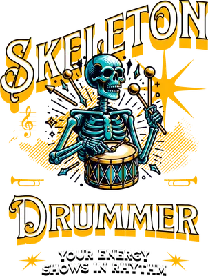 Unleash your inner rhythm with this vibrant Skeleton Drummer DTF transfer. Featuring a cool, teal-colored skeleton jamming on a snare drum, framed by bold, retro-style 'SKELETON DRUMMER' text and an inspiring 'YOUR ENERGY SHOWS IN RHYTHM' quote. Accented with dynamic starbursts, musical notes, and trumpet graphics, this design has an energetic, rock 'n' roll vibe. It's a complete, ready to press direct to film transfer that brings edgy musical flair to any garment. This unique heat transfer design is perfect for drummers, musicians, music lovers, and anyone who appreciates a blend of retro cool and rock energy. Ideal for band merchandise, concert wear, or as a stand-out piece for casual everyday style. It makes an excellent gift for a drummer's birthday, a music festival attendee, or a fun addition to Halloween attire. Small t-shirt businesses and crafters will find this iron on transfer a popular choice for their customers looking for distinctive apparel. Applying this heat press transfer is incredibly easy! It works beautifully on a wide range of fabrics including cotton, polyester, cotton-poly blends, and even nylon. Simply use a heat press at 300-325°F for 15 seconds with medium pressure, or apply with a household iron following similar guidance. There's no tedious weeding required—just peel and press for instant customization. It’s perfect for custom t-shirts, hoodies, sweatshirts, tote bags, pillow covers, and denim jackets. For best longevity, wash garments inside out and tumble dry on low heat. Experience professional-grade results with this ready to press transfer. Each piece boasts vibrant, full-color printing that captures every fine detail of the design. Our DTF transfers are crack-resistant, offer a soft touch, and avoid the heavy, stiff feel often associated with vinyl transfers. Printed on premium DTF film with a strong, reliable adhesive backing, this direct to film transfer ensures a durable and high-quality finish on all your apparel projects.