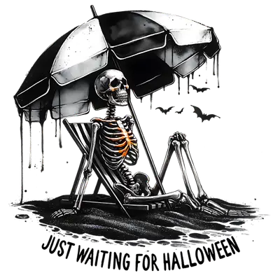Skeleton Waiting for Halloween DTF Transfer | Funny Beach Skull Design
