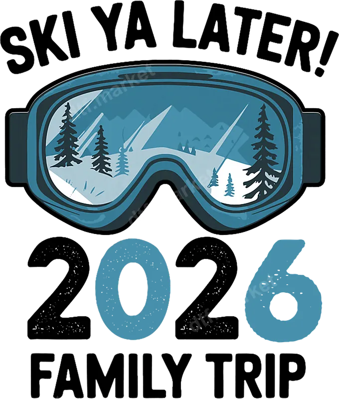 See allThis vibrant 'Ski Ya Later! 2026 Family Trip' DTF transfer features stylish ski goggles reflecting a snowy mountain landscape and pine trees. The playful typography and scenic imagery capture the excitement of a winter getaway. This high-quality direct to film transfer is ready to press, perfect for customizing your apparel for an upcoming adventure. Ideal for ski enthusiasts, snowboarders, and anyone planning a memorable winter family vacation in 2026. This heat transfer design is perfect for matching family outfits, celebrating a future ski trip, or gifting to friends who love the slopes. It's excellent for family reunions, holiday gatherings, or announcing your next big adventure. Applying this ready to press DTF transfer, also known as an iron on transfer, is simple and efficient. It works flawlessly on cotton, polyester, and blends. For best results, use a heat press at 300-325°F for 15 seconds with medium pressure. No specialized equipment is needed, and unlike vinyl transfers, there's no tedious weeding required, saving time and effort. Our premium DTF transfers boast vibrant colors and sharp details. They are designed for durability, offering excellent crack resistance and a soft-to-the-touch feel that integrates seamlessly with fabric. Each heat press design uses professional-grade DTF film and strong adhesive, ensuring a long-lasting and professional finish on all your customized garments.